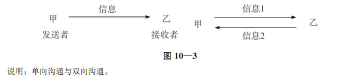 1.单向沟通和双向沟通从信息发送者与信息接收者的地位是否变换的角度来看,可将沟通分为单向沟通和双向沟通。