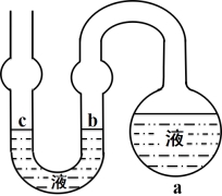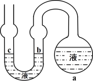 A、c液面升高,b液面下降 B、c液面下降,b液面升高