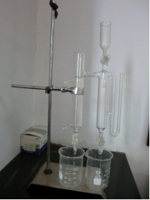 从活塞8的上方,向减压管1中装满水。将被测液体加入到样品管2中,在活塞8打开的情况下,调节活塞6使毛细管3的下端面与液面相切。关闭活塞8,打开活塞7使系统减压,当毛细管口逸出气泡时,调节活塞7”使液滴缓慢滴下,读取压力计5的最大压力差Δpm。另外,减压管1的周围是有通恒温水的夹层。