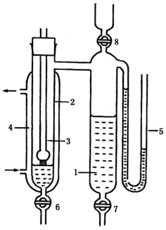1-减压装置;2-样品管;3-毛细管;4-恒温夹套;5-压力计;6、7、8-活塞