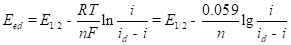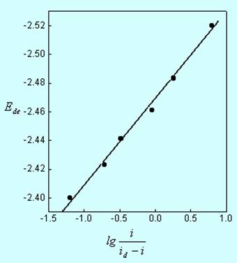 若将Ede对 作图,可得一直线,据此可用作图法求得E1/2和n值,这一方法叫做极谱波对数分析(图11-14)。