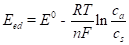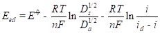 假定电极反应是可逆的,迁移电流已消除,则滴汞电极的电位为: