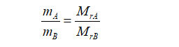 式中,mA、mB、MrA、MrB分别表示两种气体的质量和相对分子质量。