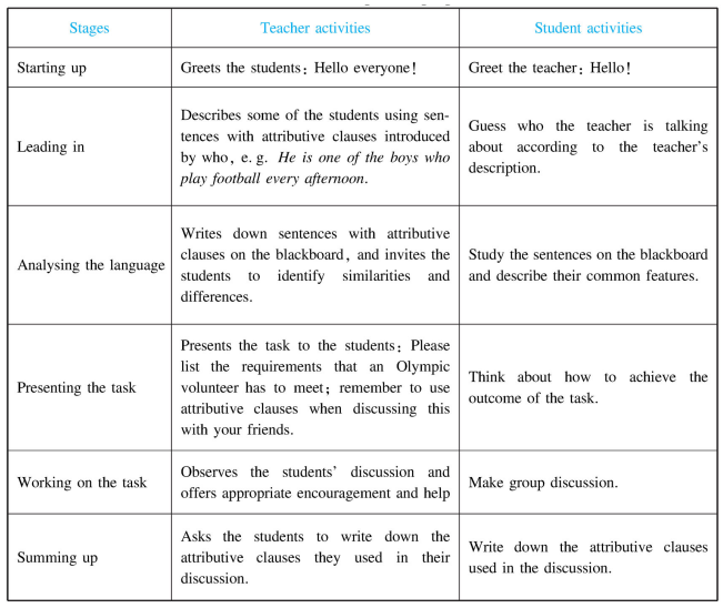 Please analyse the following activities in an English language class ( Table 2-1) with respect to the language teaching approaches and methods discussed in the above section.