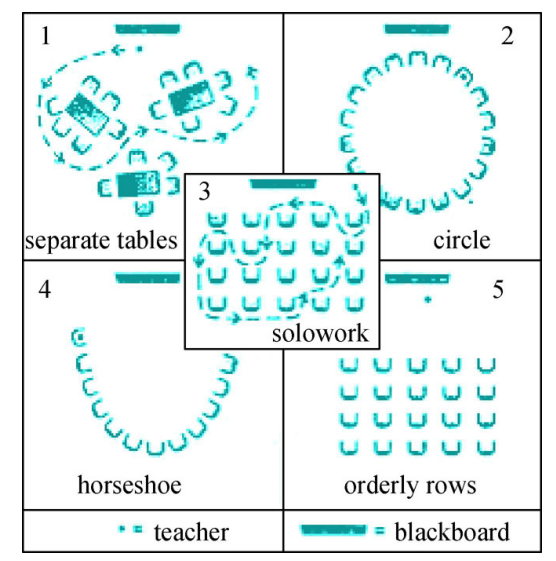 Harmer (2000: 18) suggested the following seating arrangements, as shown in Figure 5-1.