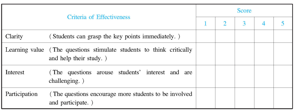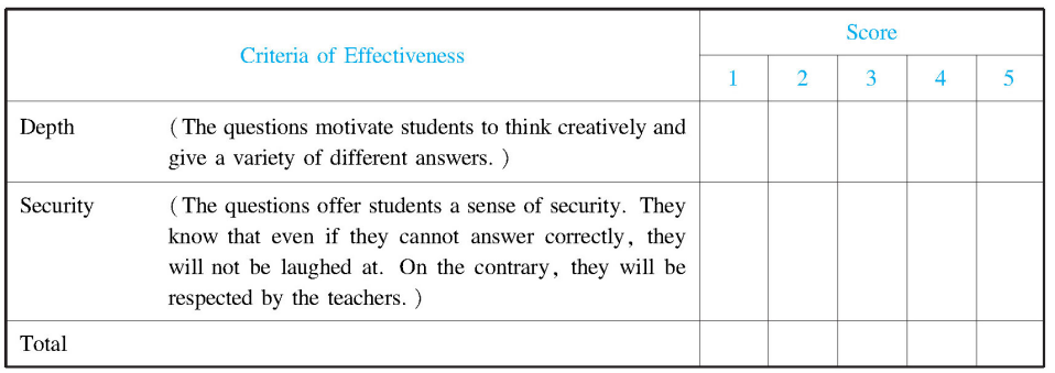 Table 16-3 Observation of teacher questioning